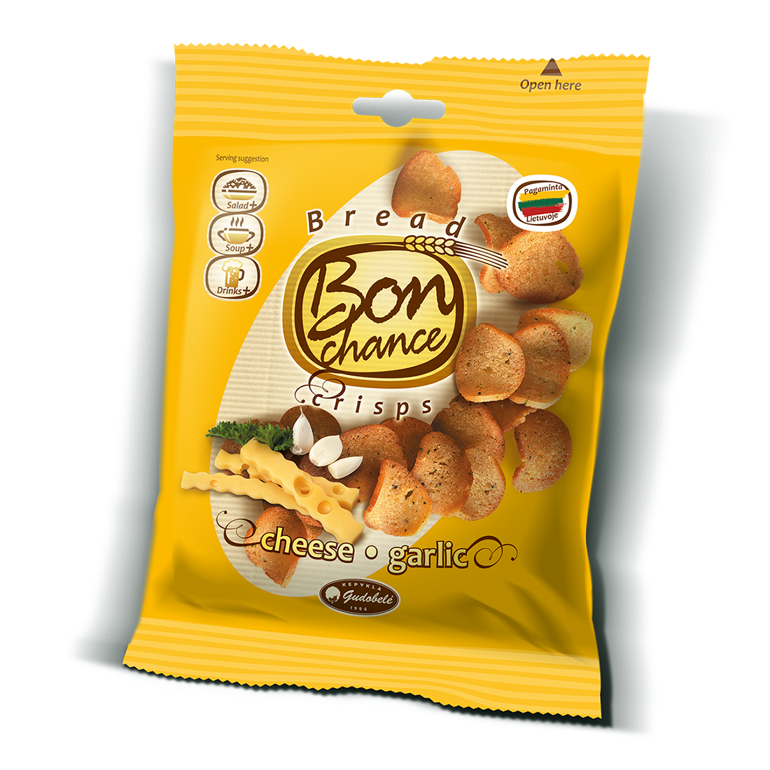 Bread Crisps Rye Cheese & Garlic Flavour Bon Chance 60g, 40 packs per box
