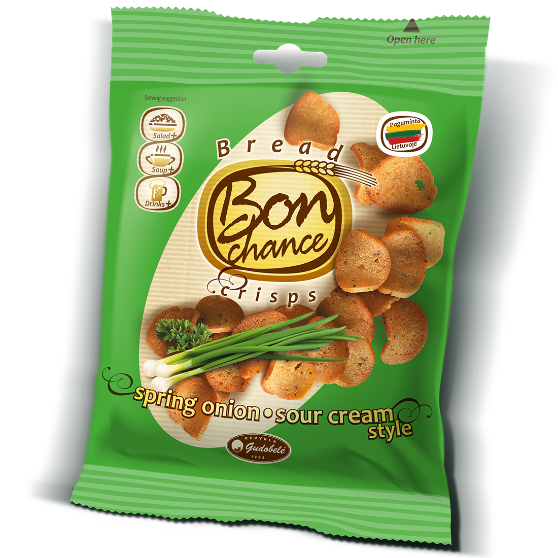 Bread Crisps Spring Onion & Sour Cream Flavour Bon Chance 60g, 40 packs per box