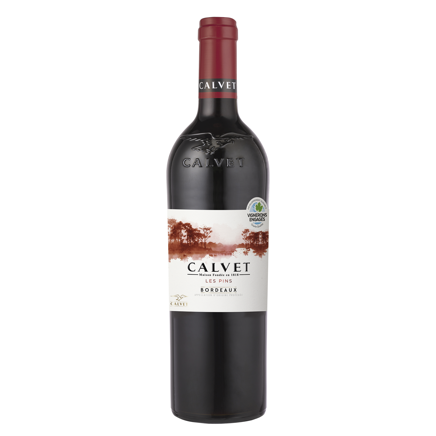 Calvet Les Pins Bordeaux AOP is a classic French red wine crafted from Merlot and Malbec grapes. This vintage features a deep garnet colour with purple hues and an intense nose of violet, blackcurrant, and blueberry.