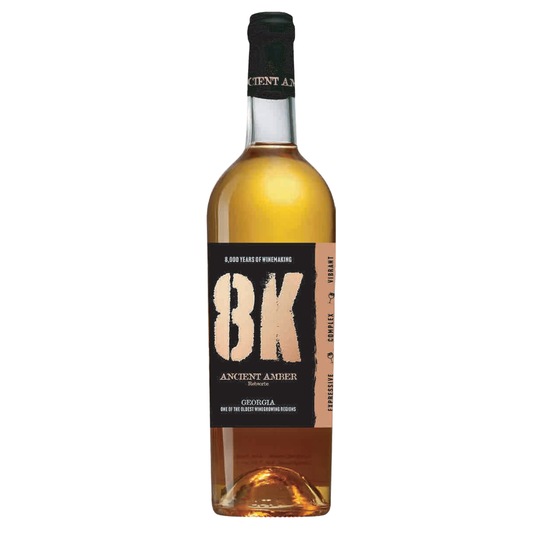 The 8K Ancient Amber wine is a celebration of Georgia's status as the birthplace of wine. The "8K" signifies the 8,000 vintages that have passed, and this wine is made in a style that honours that legacy. Produced from indigenous white grapes fermented on their skins, this is a profound and complex amber (orange) wine.