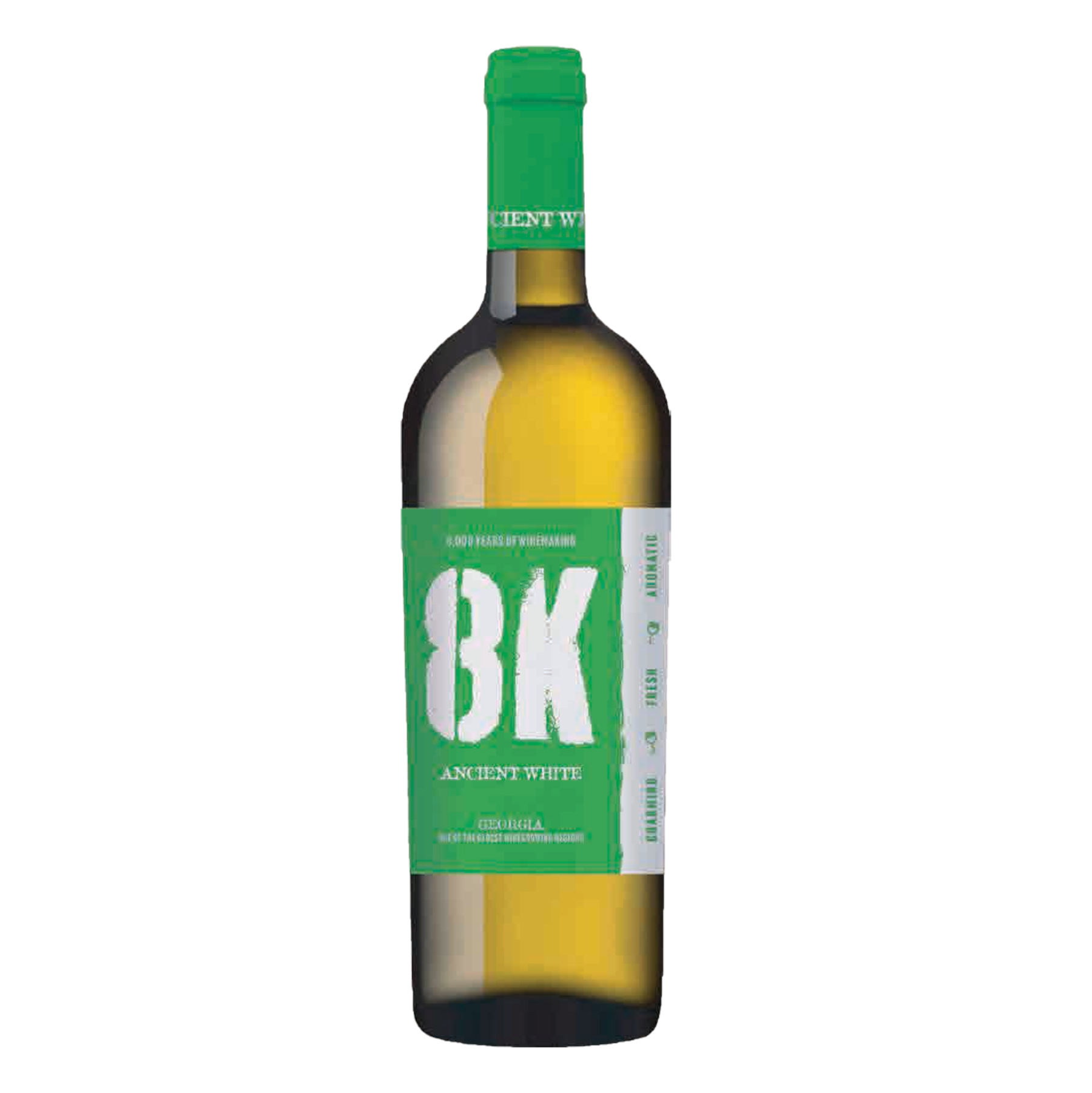 The 8K Ancient White is a semi-dry wine that celebrates Georgia's incredible 8,000-vintage history. Made from a blend of traditional Georgian white grape varieties, this wine is designed to be accessible and enjoyable. It captures the aromatic potential of its grapes, with a touch of residual sugar that makes it smooth and easy to drink, while still finishing with a pleasant freshness.